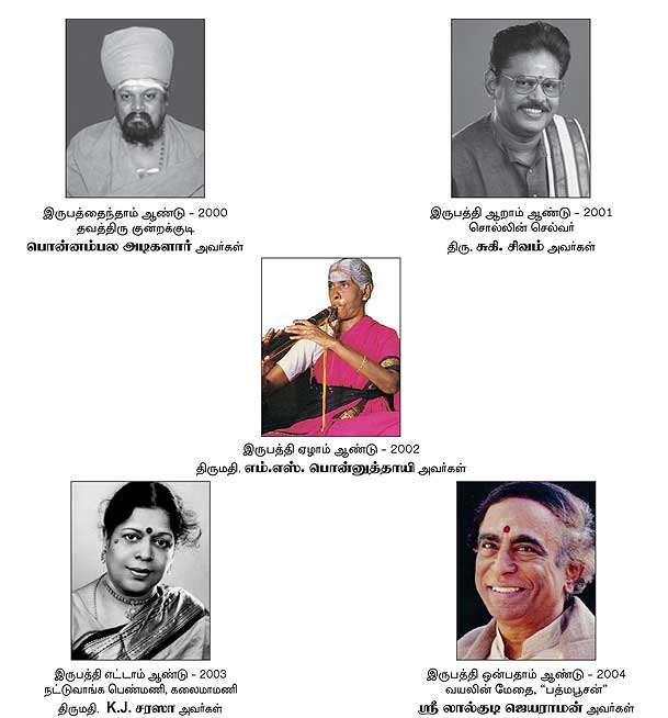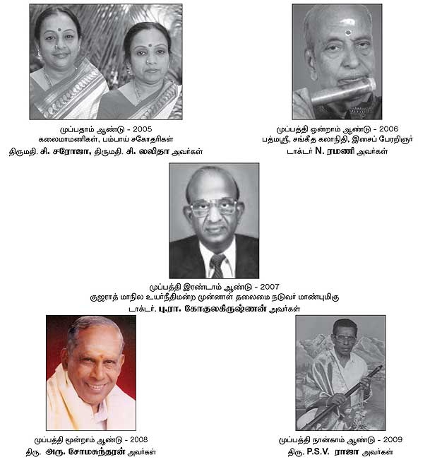 2001 ஆம் ஆண்டு முதல் அரசர் டாக்டர் அண்ணாமலைச் செட்டியார் அவர்கள் பிறந்த செப்டம்பர் 30 ஆம் தேதியும், தமிழிசைக்காவலர் டாக்டர் ராஜா சர் முத்தையா செட்டியார் அவர்கள் பிறந்த ஆகஸ்ட் 5 ஆம் தேதியும் தமிழ் வளர்க்கும் கலைஞர்களை ஊக்குவிக்கும் வகையில் ஆண்டு தோறும் அரசர் அவர்களின் பிறந்த நாள் விழாவில் சிறந்த தமிழ் இசைக் கலைஞர்களுக்கு பொற்கிழியாக தலா ரூபாய் 25,000/- மும் வழங்கி கெளரவித்து வருகிறது.